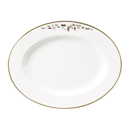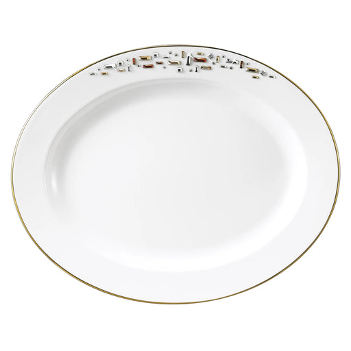 Ideal for Serving Purposes Fine Bone China Hand-painted 24K Gold w/ Hand-applied Swarovski Crystals and Decal Diana Gold Collection Prouna 14" Len...
